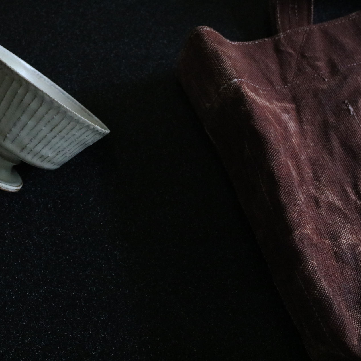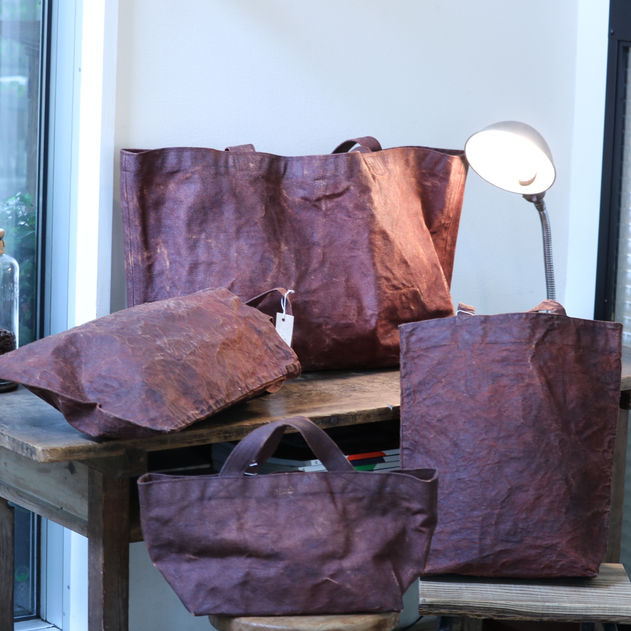 日本古来の天然染料柿渋で何回も染めては天日干しを繰り返し独特の色合いや雰囲気をもつカバンや小物類を揃えています。